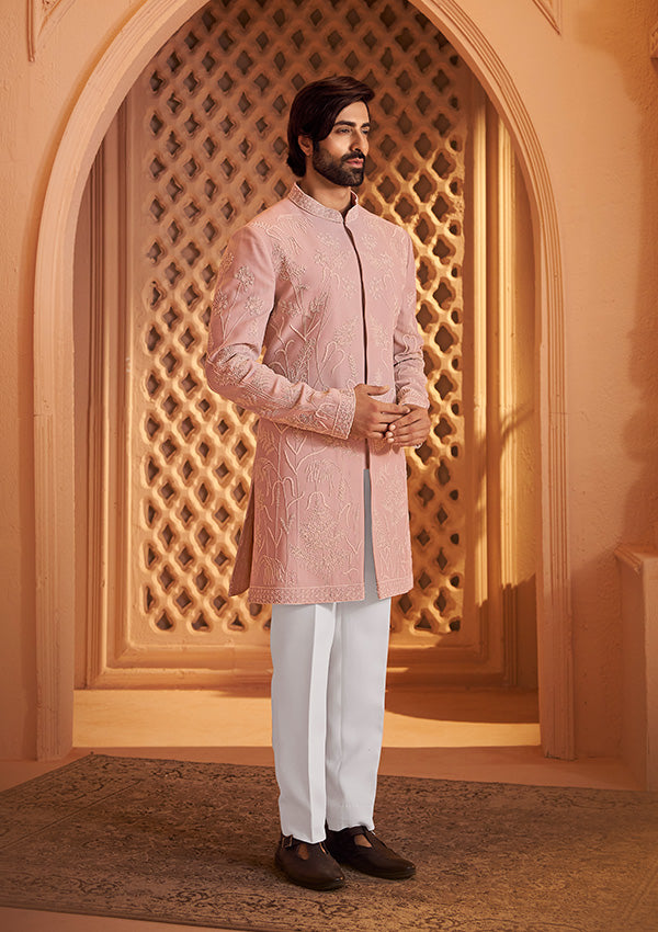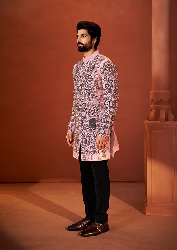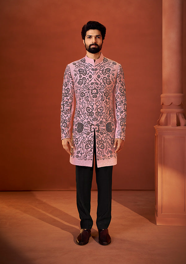 At Millionare, our curated Indo-Western sherwani designs and party wear harmoniously blend tradition and contemporary style, allowing clients to make a statement while embracing their culture and heritage.